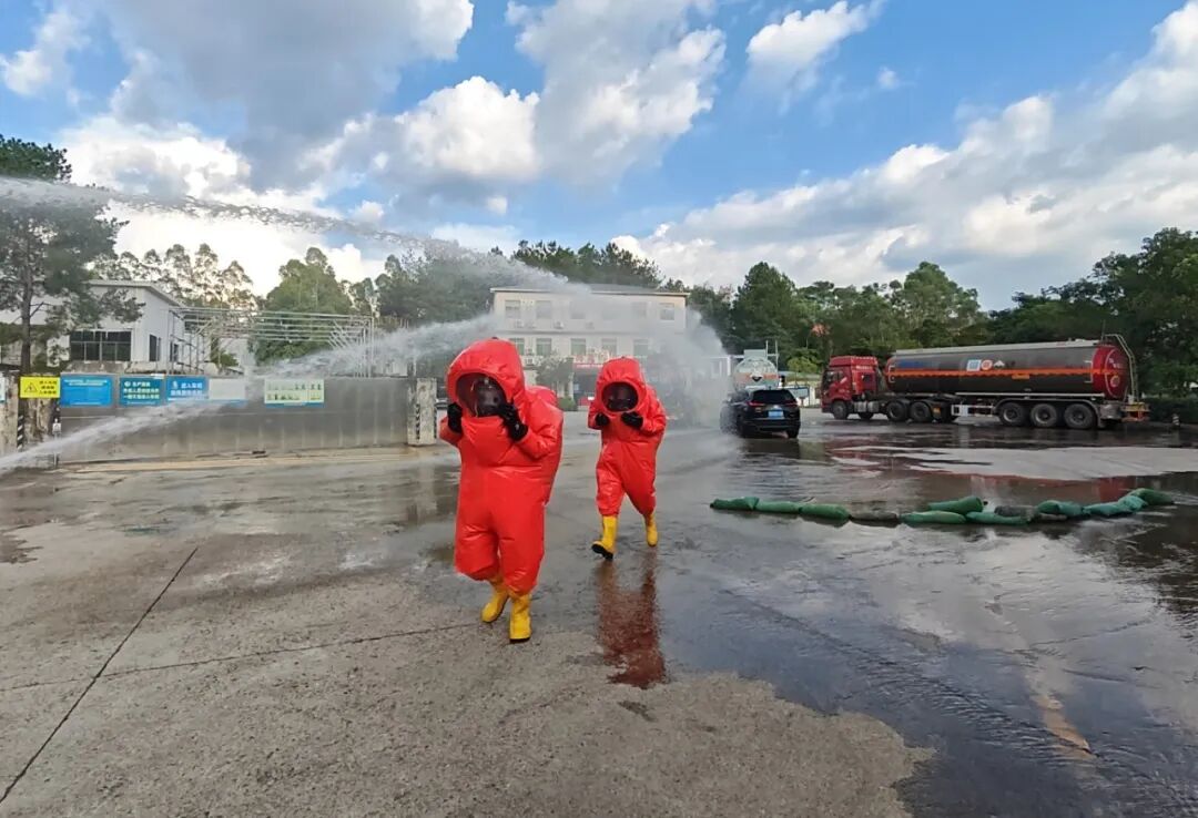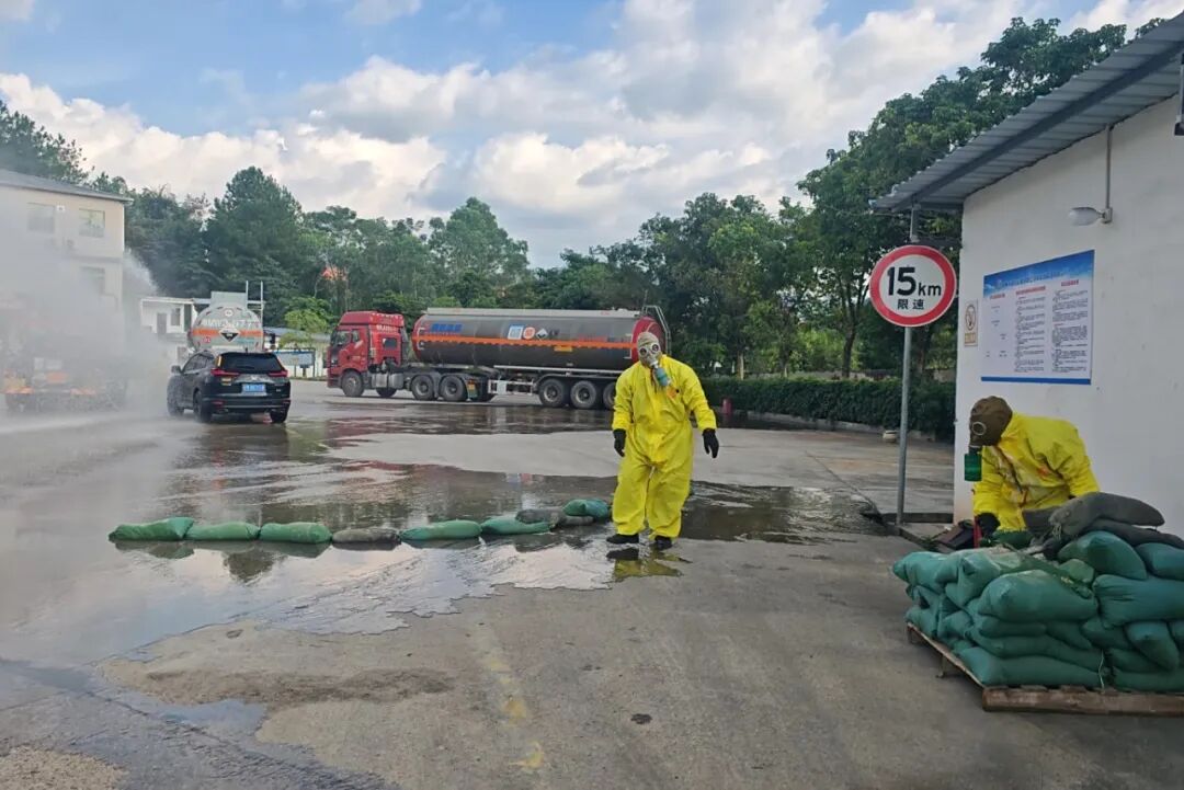 為進一步提高員工安全意識,檢驗公司生產(chǎn)安全事故應(yīng)急預(yù)案體系的科學(xué)性、銜接性和可操作性,增強對氨水泄漏事故專項應(yīng)急處置能力,確保事故發(fā)生后能夠及時、高效、有序地進行應(yīng)急處置工作,2025年10月16日下午,海龍化工及海龍運輸公司在文?;S區(qū)組織開展了相關(guān)應(yīng)急演練活動,公司董事長賴仕海先生出席了此次活動。
